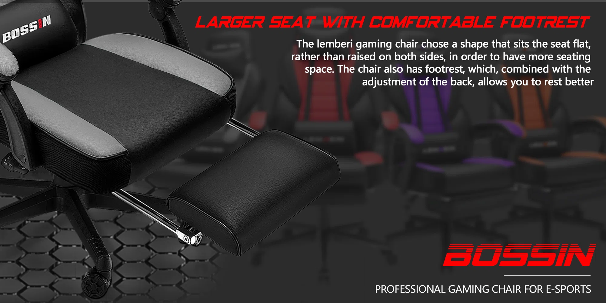 • BOSSIN Gaming Chairs with Footrest, Ergonomic Computer Game Chairs with Lumbar Support