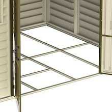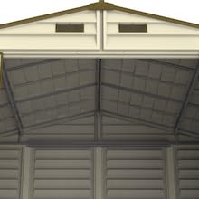 Duramax WoodSide 10 x 8 (8.02 m2) Plastic Garden Shed with 3 Fixed Windows & Metal Foundation Kit, Strong Metal Roof Structure Fire Retardant and Maintenance-Free Storage Shed - Ivory/Brown