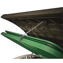Our global selling storage solution and bike store that can fit anywhere within your garden or patio area. With a storage capacity of 2000L this storage shed is perfect as a bike store or can hold two 360L or three 120L bins.Durable and weather-resistant, contents are kept both dry and ventilated.Easy-opening lid with hydraulic pistons and sloped threshold makes access easy from the front or the top .Shelves can be placed inside for extra storage and there is a lockable option for peace of mind.