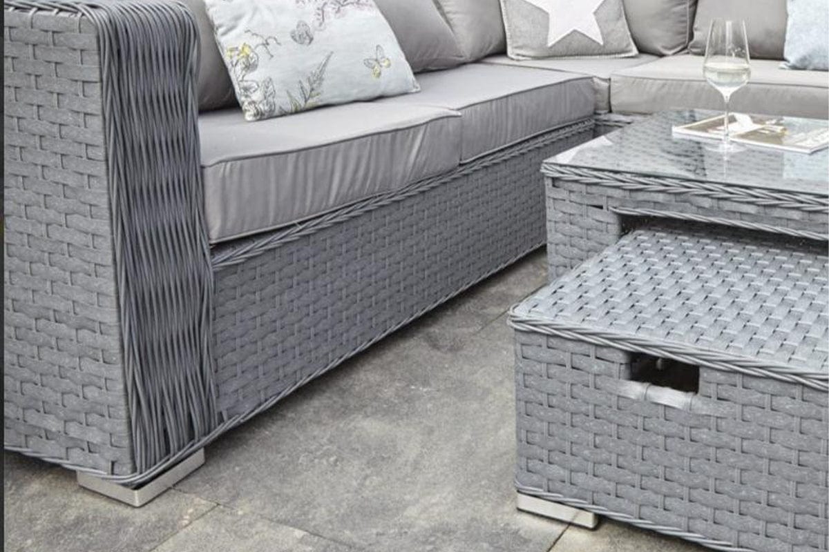 Whether you place it by the pool, out on the lawn, on the patio or anywhere else in your garden, this fantastic 8-seater rattan garden sofa set will look sensational. It comes with a gloriously spacious corner sofa that will bring groups of friends and family close together during celebrations, along with two footstools, glass-topped coffee table and a comfortable seat and back cushions. This rattan garden sofa set ticks all the right boxes when it comes to making sure everyone has their own space and remains relaxed for hours on end. If only grey rattan garden furniture will do for you, this is a set that has to be close to the top of your list.