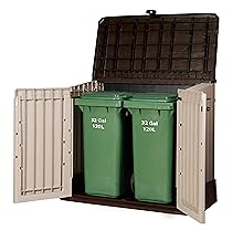 - Ideal outdoor storage solution for garden tools and equipment, BBQ and accessories and x2 120L wheelie bins