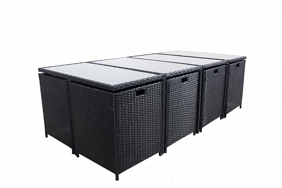 Cet ensemble de mobilier de salle à manger comprend 8chaises, 4 tabourets et une table avec 4 élégant plateau en verre, et il offre suffisamment d'espace pour toute la famille. Le poly rotin tissé est un matériau durable et résistant ainsi il est donc parfait pour la fabrication de meubles de jardin. La finition premium de cet ensemble assure une utilisation durable et satisfaisante!