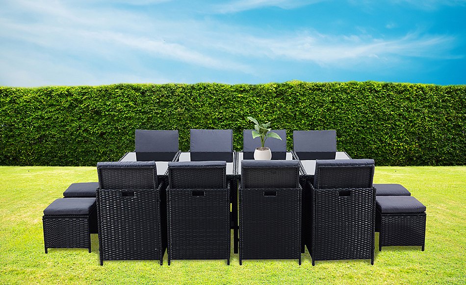 Tous les atouts en un seul coup d’œil :Ensemble de 13 chaises en rotin AREBOSDesign classique et contemporain, grande stabilité et durabilité, cadre métallique robuste avec revêtement thermolaqué, robustesse élevée et qualité inoxydable durable!