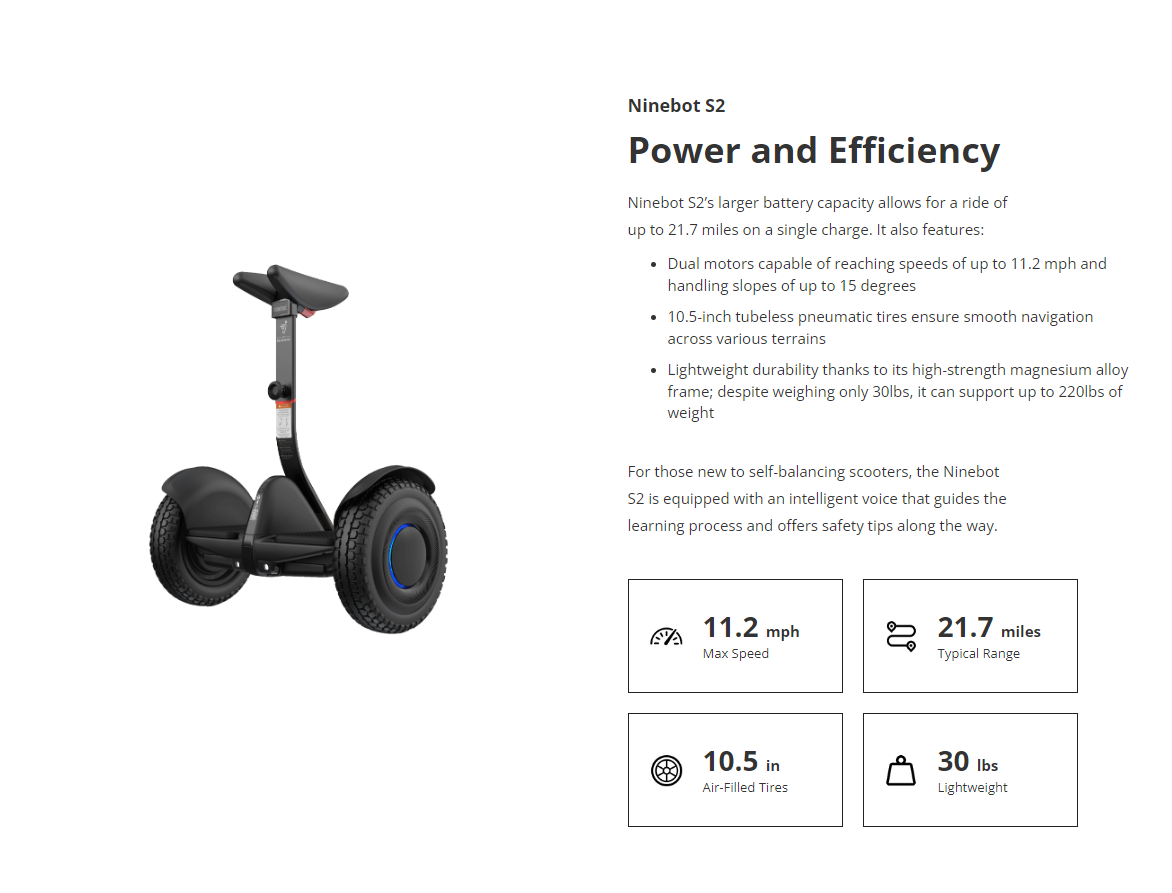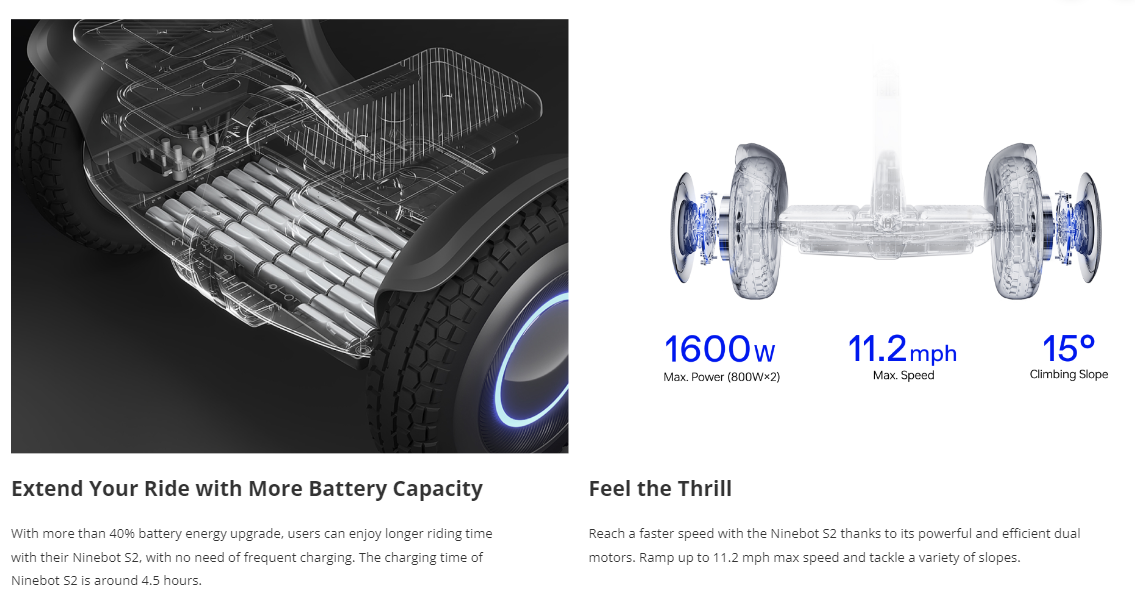 The Ninebot S2 offers the perfect self-balancing scooter experience for riders seeking both style and comfort. Whether teen or adult, users can easily adjust the knee control bar height to achieve a personalized fit. The RGB wheel lights and taillights can also be personalized to reflect individual mood and personality. With a built-in Bluetooth speaker, riders can sync their devices to pair the perfect playlist with a smooth ride.